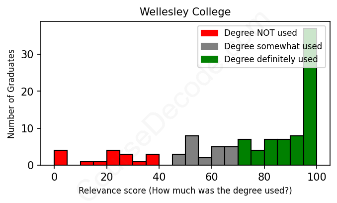 Of all the Wellesley College graduates we've analyzed, here's how many have used (or NOT used) their degree in their career according to our analysis: