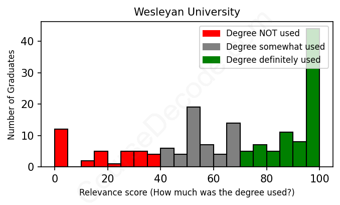 Of all the Wesleyan University graduates we've analyzed, here's how many have used (or NOT used) their degree in their career according to our analysis: