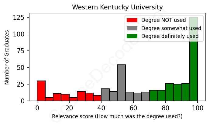 Of all the Western Kentucky University graduates we've analyzed, here's how many have used (or NOT used) their degree in their career according to our analysis: