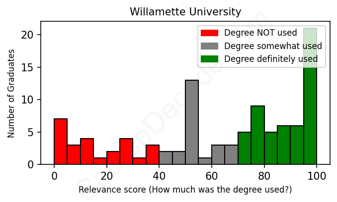 Of all the Willamette University graduates we've analyzed, here's how many have used (or NOT used) their degree in their career according to our analysis: