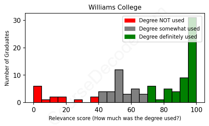Of all the Williams College graduates we've analyzed, here's how many have used (or NOT used) their degree in their career according to our analysis: