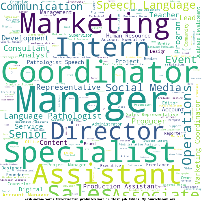 Here is a visual representation of the most common words in job titles for Communication graduates: