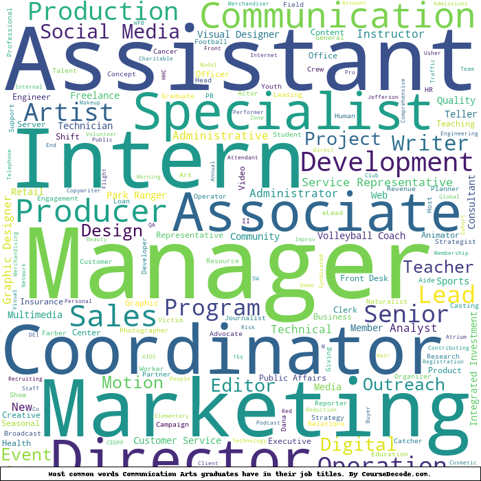 Here is a visual representation of the most common words in job titles for Communication Arts graduates: