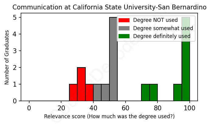 First, some facts. Of the Communication graduates from California State University-San Bernardino we've analyzed , here's how many have used (or NOT used) their degree in their career: