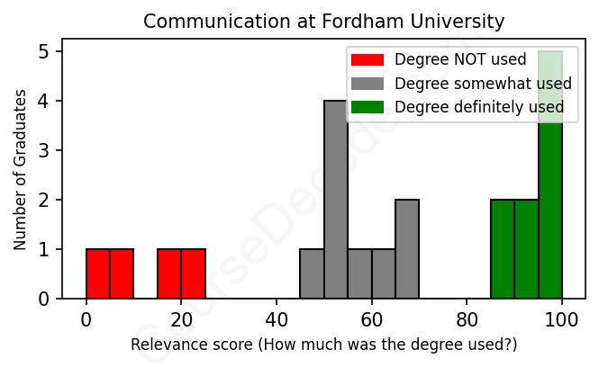 First, some facts. Of the Communication graduates from Fordham University we've analyzed , here's how many have used (or NOT used) their degree in their career: