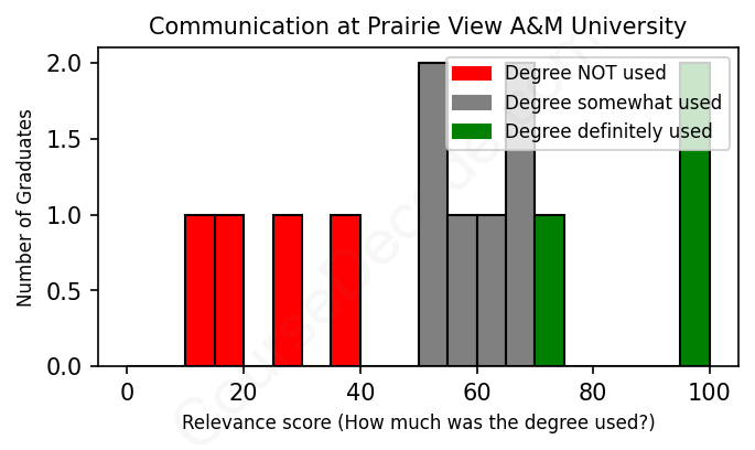 First, some facts. Of the Communication graduates from Prairie View A&M University we've analyzed , here's how many have used (or NOT used) their degree in their career: