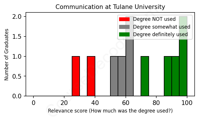 First, some facts. Of the Communication graduates from Tulane University we've analyzed , here's how many have used (or NOT used) their degree in their career: