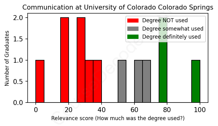 First, some facts. Of the Communication graduates from University of Colorado Colorado Springs we've analyzed , here's how many have used (or NOT used) their degree in their career: