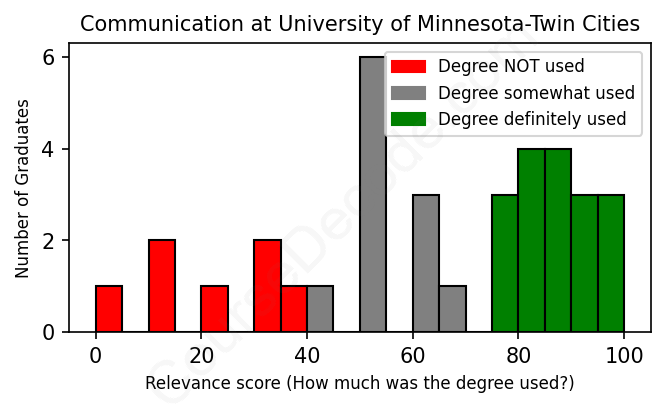 First, some facts. Of the Communication graduates from University of Minnesota-Twin Cities we've analyzed , here's how many have used (or NOT used) their degree in their career: