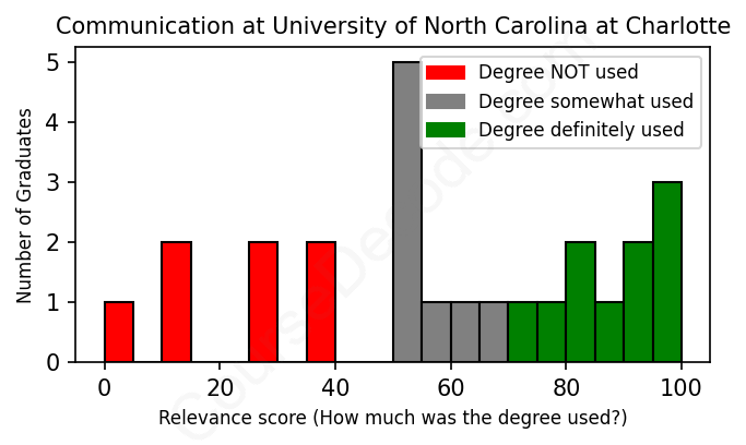 First, some facts. Of the Communication graduates from University of North Carolina at Charlotte we've analyzed , here's how many have used (or NOT used) their degree in their career: