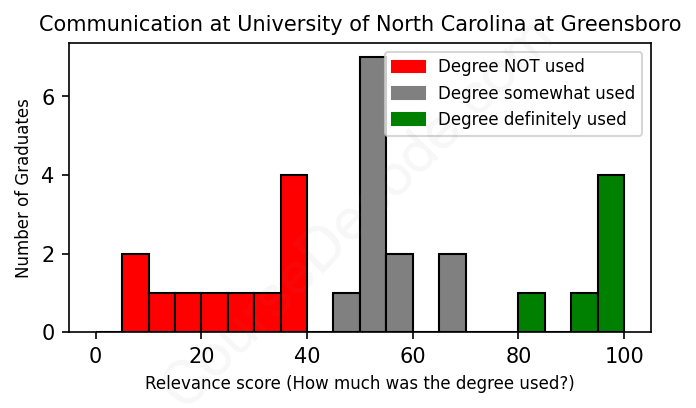 First, some facts. Of the Communication graduates from University of North Carolina at Greensboro we've analyzed , here's how many have used (or NOT used) their degree in their career: