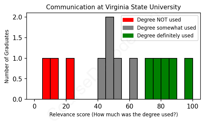 First, some facts. Of the Communication graduates from Virginia State University we've analyzed , here's how many have used (or NOT used) their degree in their career: