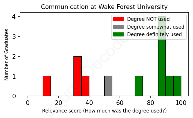 First, some facts. Of the Communication graduates from Wake Forest University we've analyzed , here's how many have used (or NOT used) their degree in their career: