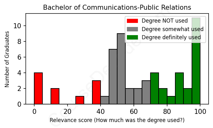 First, some facts. Of the Communications-Public Relations graduates we've analyzed , here's how many have used (or NOT used) their degree in their career:
