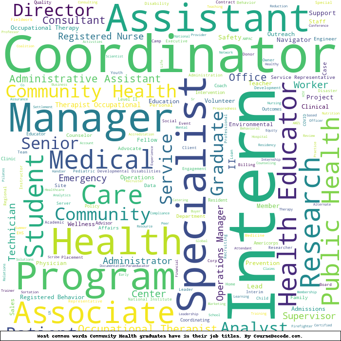 Here is a visual representation of the most common words in job titles for Community Health graduates: