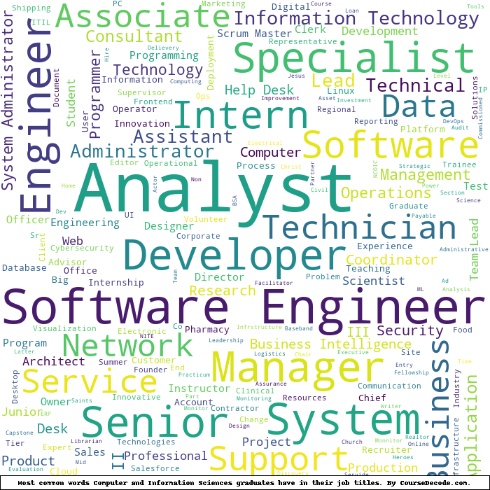 Here is a visual representation of the most common words in job titles for Computer and Information Sciences graduates:
