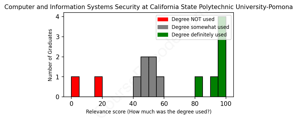 First, some facts. Of the Computer and Information Systems Security graduates from California State Polytechnic University-Pomona we've analyzed , here's how many have used (or NOT used) their degree in their career:
