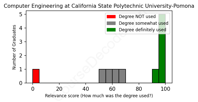 First, some facts. Of the Computer Engineering graduates from California State Polytechnic University-Pomona we've analyzed , here's how many have used (or NOT used) their degree in their career: