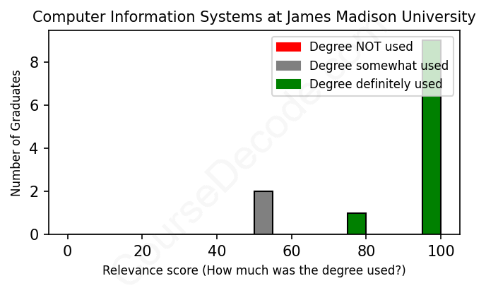First, some facts. Of the Computer Information Systems graduates from James Madison University we've analyzed , here's how many have used (or NOT used) their degree in their career: