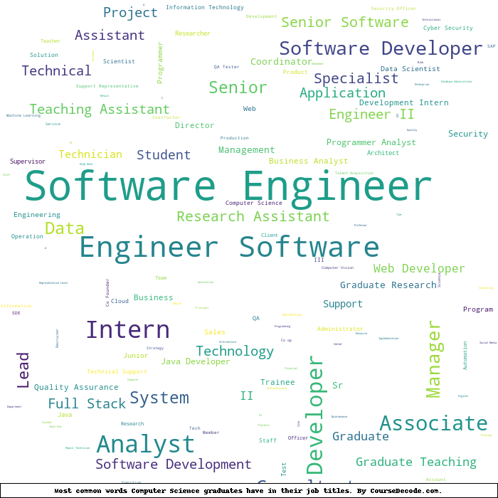 Here is a visual representation of the most common words in job titles for Computer Science graduates: