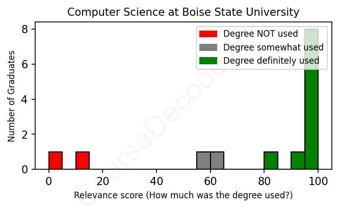 First, some facts. Of the Computer Science graduates from Boise State University we've analyzed , here's how many have used (or NOT used) their degree in their career:
