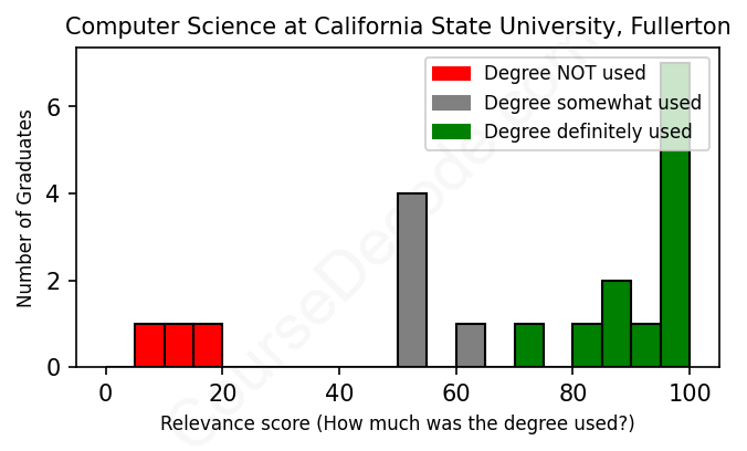 First, some facts. Of the Computer Science graduates from California State University, Fullerton we've analyzed , here's how many have used (or NOT used) their degree in their career: