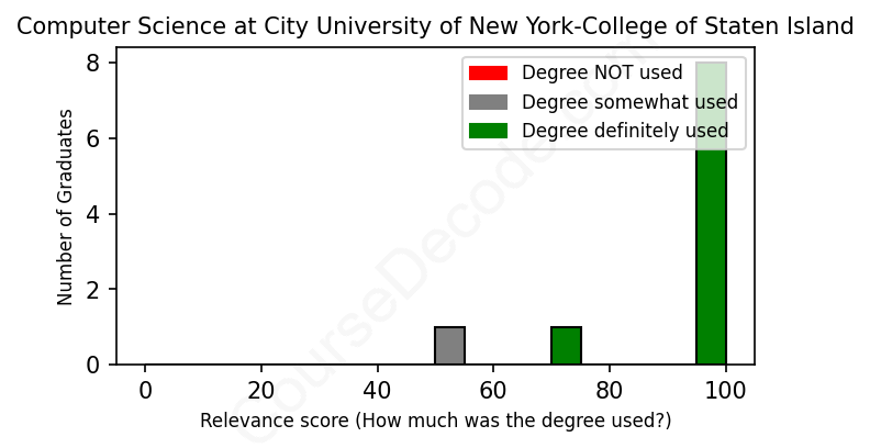 First, some facts. Of the Computer Science graduates from City University of New York-College of Staten Island we've analyzed , here's how many have used (or NOT used) their degree in their career: