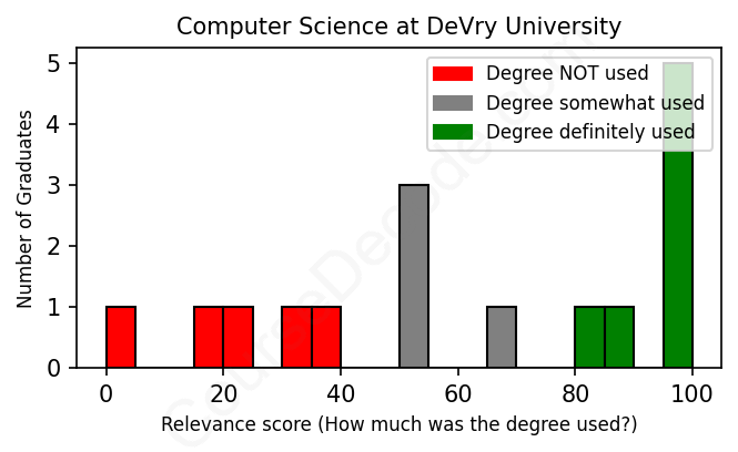 First, some facts. Of the Computer Science graduates from DeVry University we've analyzed , here's how many have used (or NOT used) their degree in their career:
