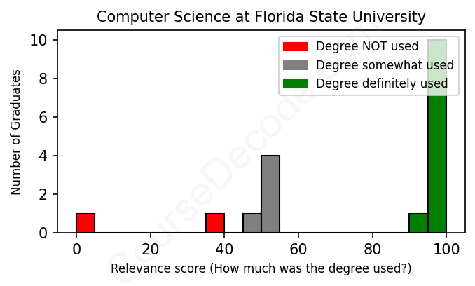 First, some facts. Of the Computer Science graduates from Florida State University we've analyzed , here's how many have used (or NOT used) their degree in their career: