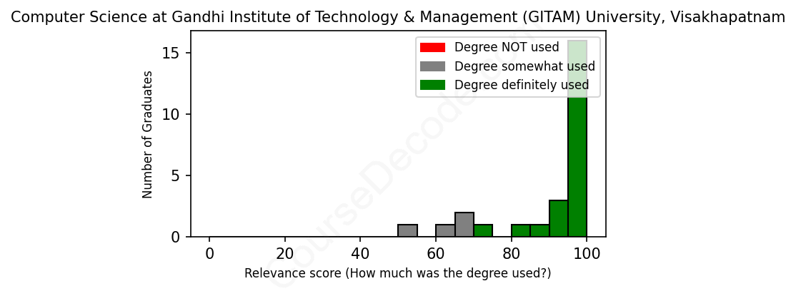 First, some facts. Of the Computer Science graduates from Gandhi Institute of Technology & Management (GITAM) University, Visakhapatnam we've analyzed , here's how many have used (or NOT used) their degree in their career: