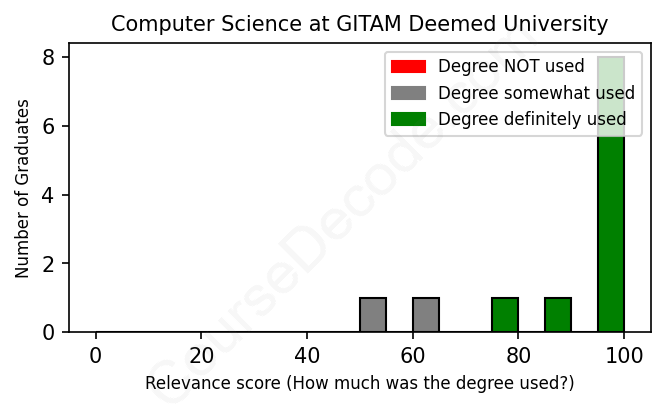 First, some facts. Of the Computer Science graduates from GITAM Deemed University we've analyzed , here's how many have used (or NOT used) their degree in their career: