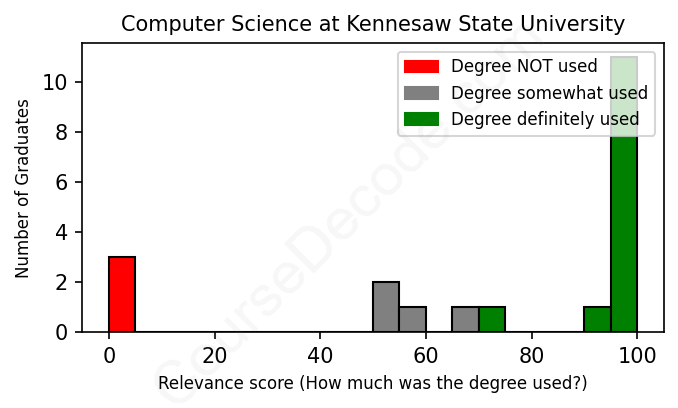 First, some facts. Of the Computer Science graduates from Kennesaw State University we've analyzed , here's how many have used (or NOT used) their degree in their career: