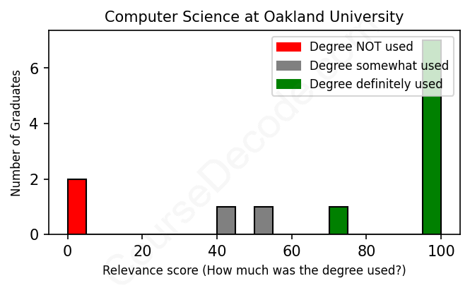 First, some facts. Of the Computer Science graduates from Oakland University we've analyzed , here's how many have used (or NOT used) their degree in their career: