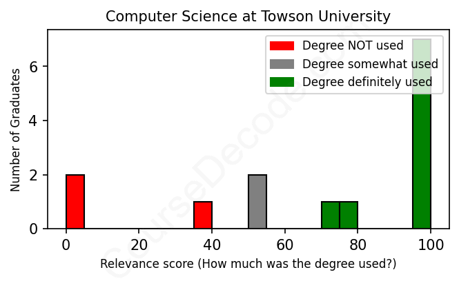 First, some facts. Of the Computer Science graduates from Towson University we've analyzed , here's how many have used (or NOT used) their degree in their career: