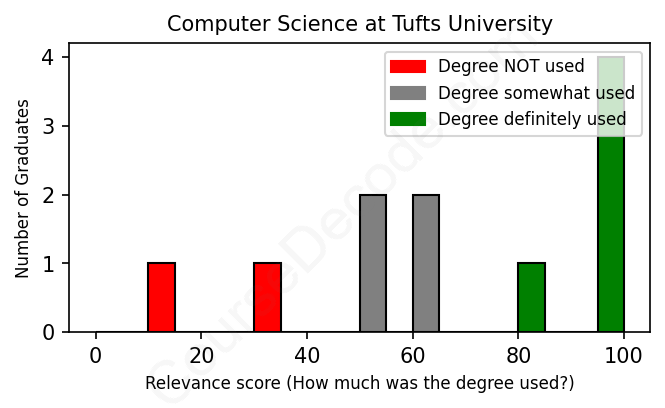 First, some facts. Of the Computer Science graduates from Tufts University we've analyzed , here's how many have used (or NOT used) their degree in their career: