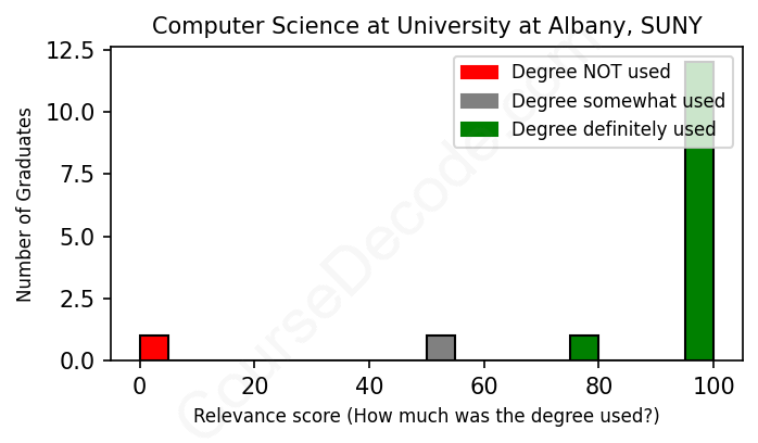 First, some facts. Of the Computer Science graduates from University at Albany, SUNY we've analyzed , here's how many have used (or NOT used) their degree in their career: