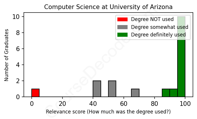 First, some facts. Of the Computer Science graduates from University of Arizona we've analyzed , here's how many have used (or NOT used) their degree in their career: