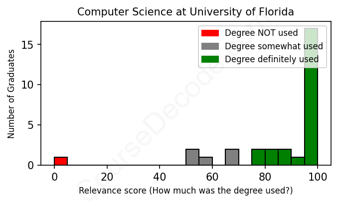 First, some facts. Of the Computer Science graduates from University of Florida we've analyzed , here's how many have used (or NOT used) their degree in their career: