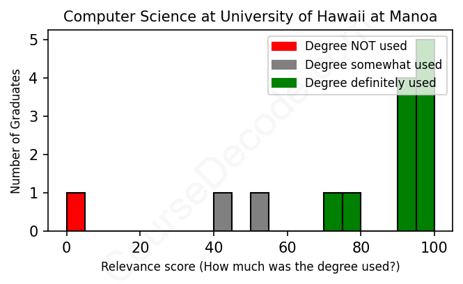 First, some facts. Of the Computer Science graduates from University of Hawaii at Manoa we've analyzed , here's how many have used (or NOT used) their degree in their career: