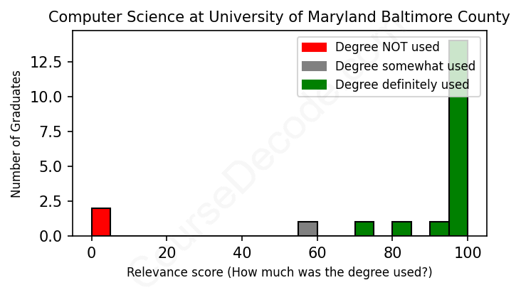 First, some facts. Of the Computer Science graduates from University of Maryland Baltimore County we've analyzed , here's how many have used (or NOT used) their degree in their career: