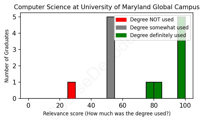 First, some facts. Of the Computer Science graduates from University of Maryland Global Campus we've analyzed , here's how many have used (or NOT used) their degree in their career: