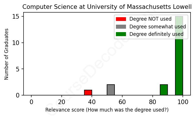 First, some facts. Of the Computer Science graduates from University of Massachusetts Lowell we've analyzed , here's how many have used (or NOT used) their degree in their career: