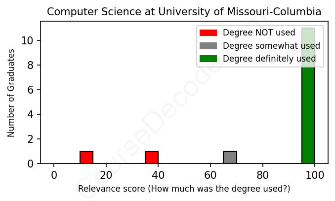 First, some facts. Of the Computer Science graduates from University of Missouri-Columbia we've analyzed , here's how many have used (or NOT used) their degree in their career: