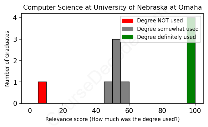 First, some facts. Of the Computer Science graduates from University of Nebraska at Omaha we've analyzed , here's how many have used (or NOT used) their degree in their career: