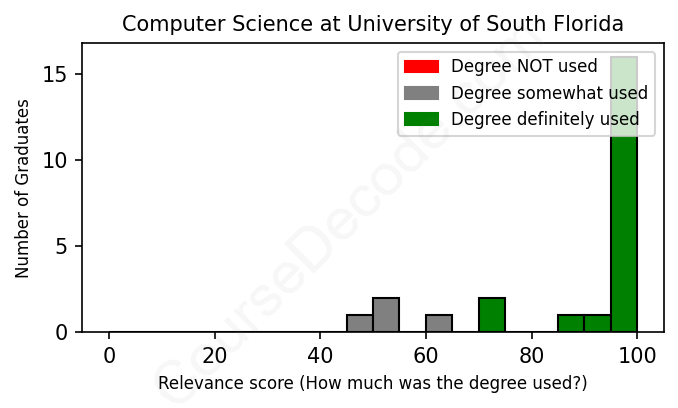 First, some facts. Of the Computer Science graduates from University of South Florida we've analyzed , here's how many have used (or NOT used) their degree in their career: