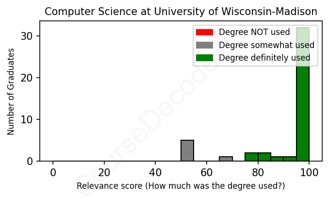 First, some facts. Of the Computer Science graduates from University of Wisconsin-Madison we've analyzed , here's how many have used (or NOT used) their degree in their career: