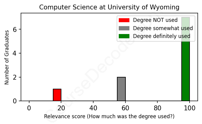First, some facts. Of the Computer Science graduates from University of Wyoming we've analyzed , here's how many have used (or NOT used) their degree in their career: