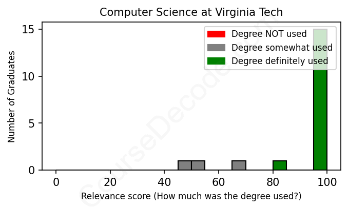 First, some facts. Of the Computer Science graduates from Virginia Tech we've analyzed , here's how many have used (or NOT used) their degree in their career: