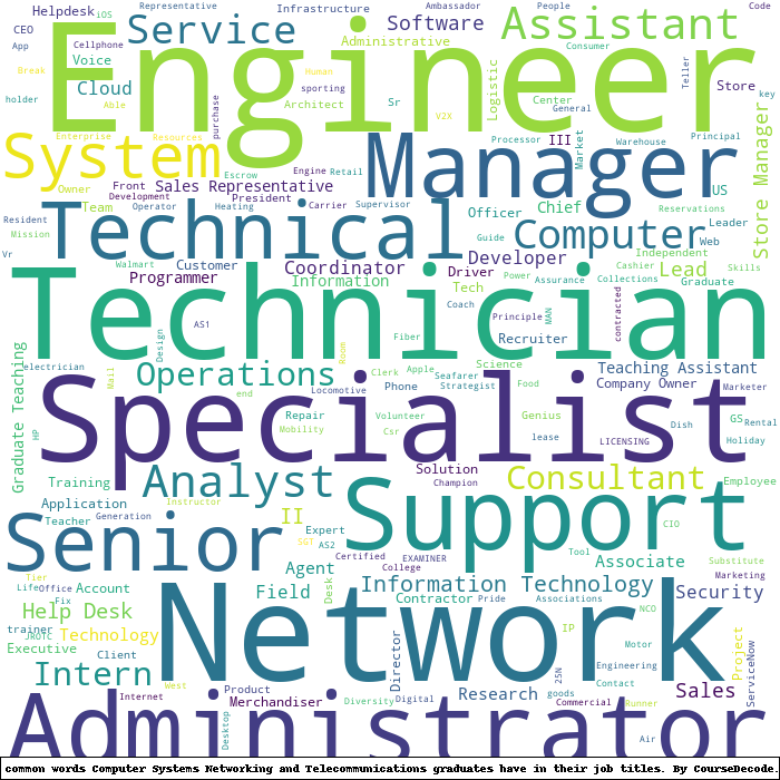 Here is a visual representation of the most common words in job titles for Computer Systems Networking and Telecommunications graduates: