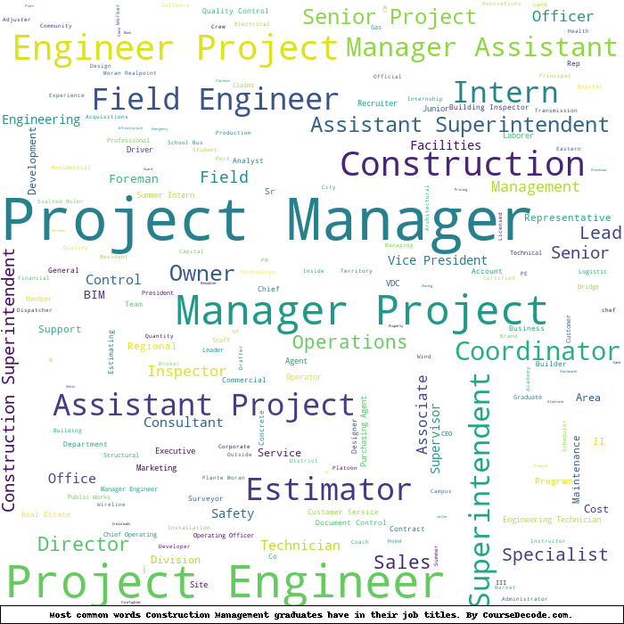 Here is a visual representation of the most common words in job titles for Construction Management graduates: